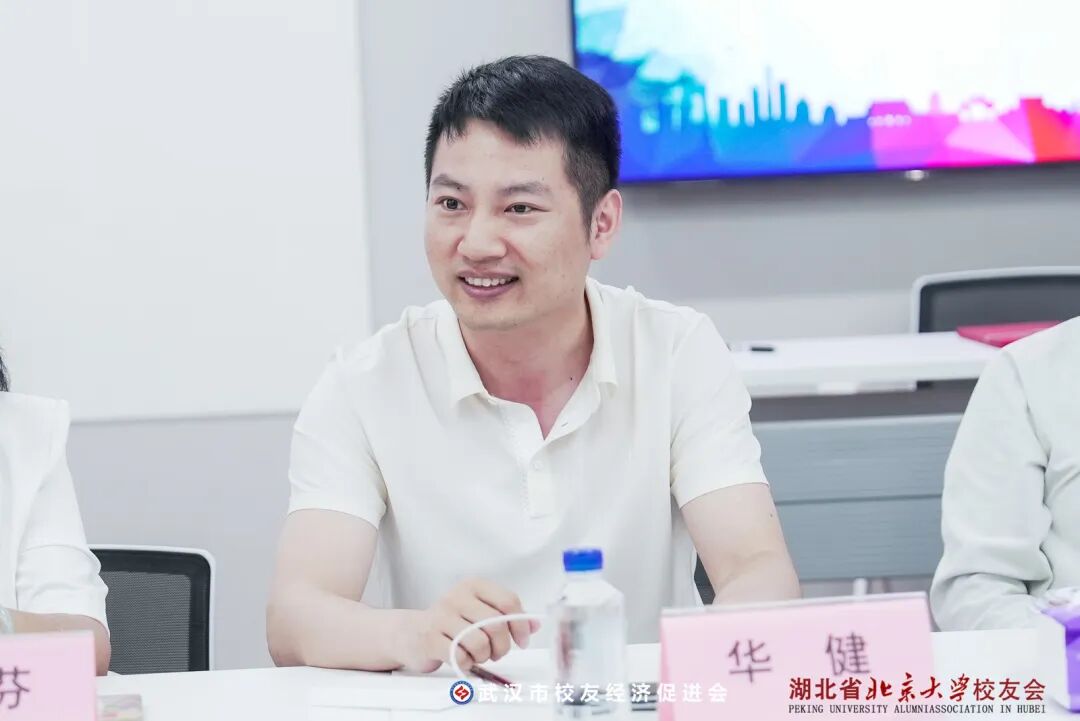 华健介绍了湖北省清华大学校友会的历史与发展,并表示将积极参与武汉校促会的各项活动,未来可以联合主办行业交流活动和学术讲座,互相推荐资源,共同推动校友经济的发展。