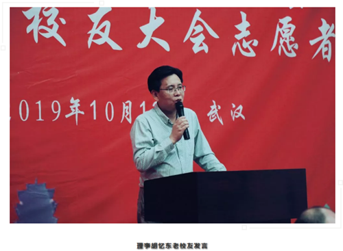 新时代,新面貌;新机遇,新发展。新湖北,新使命;新担当,新作为。在其后新校友的一一自我介绍后,四位老校友代表进行了分享发言。首先,杨三文副会长结合自己毕业近三十年丰富的工作经历,分享了要“从小事做起和请示回报”的经验体会,他说,从学校10%的“硬知识”中走出来,要更好地掌握90%的社会“软知识”,对“重要事情”有更深刻的认识,适应社会经济发展需求。建议新校友在工作中,遇到不理解、拿不定主意事情,要向领导多请示、多汇报,做好及时反馈,才能不断进步。
